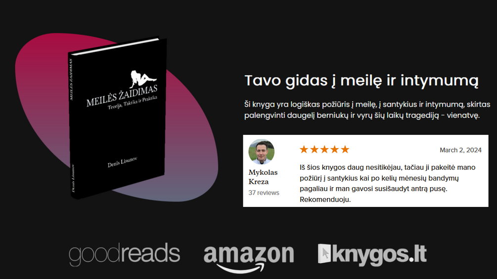 Ši knyga yra logiškas požiūris į meilę, į santykius ir intymumą, skirtas palengvinti daugelį berniukų ir vyrų šių laikų tragediją - vienatvę.
